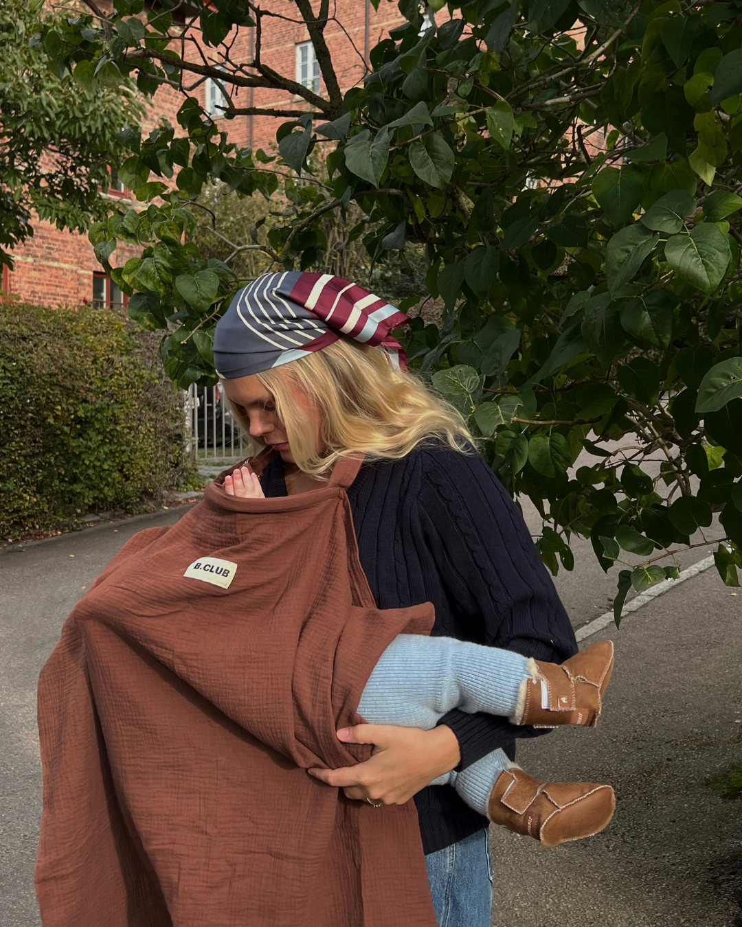 What truly sets this shawl apart is the gently curved insert between the straps. It keeps the fabric lifted so your baby can always see you – and you can see them. This creates what we call the B.Club safe zone – a little space of calm, closeness, and connection, no matter where you are.